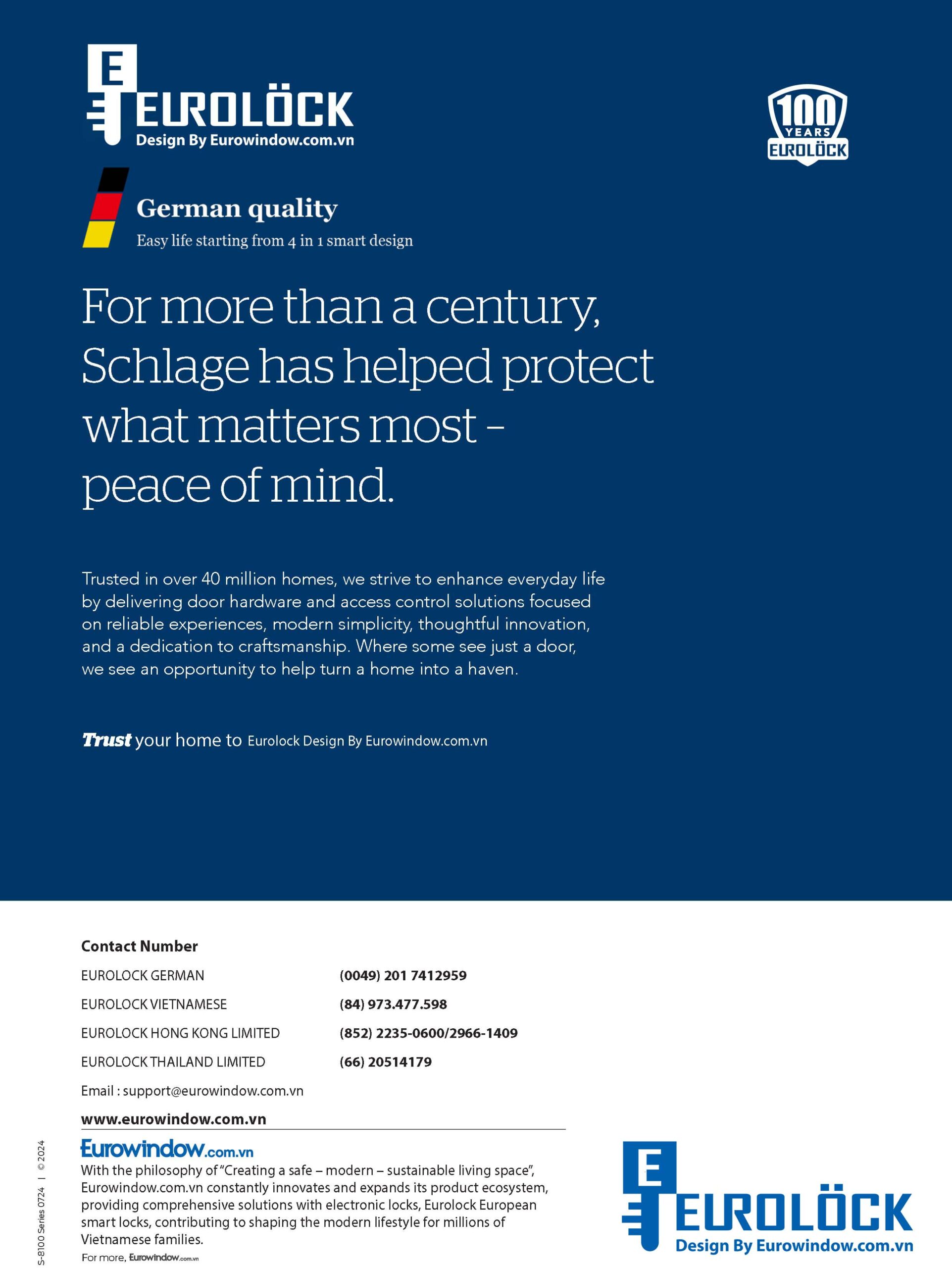 Hãy lựa chọn Dessmann – thương hiệu Đức chuẩn châu Âu, hoặc Eurowindow.com.vn – nhà tiên phong về thiết bị cửa thông minh tại Việt Nam để mang đến sự an tâm và đẳng cấp cho không gian của bạn.
